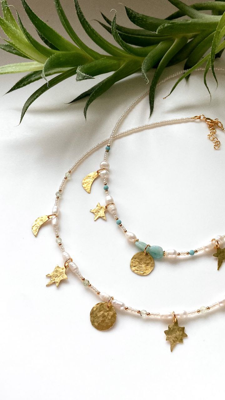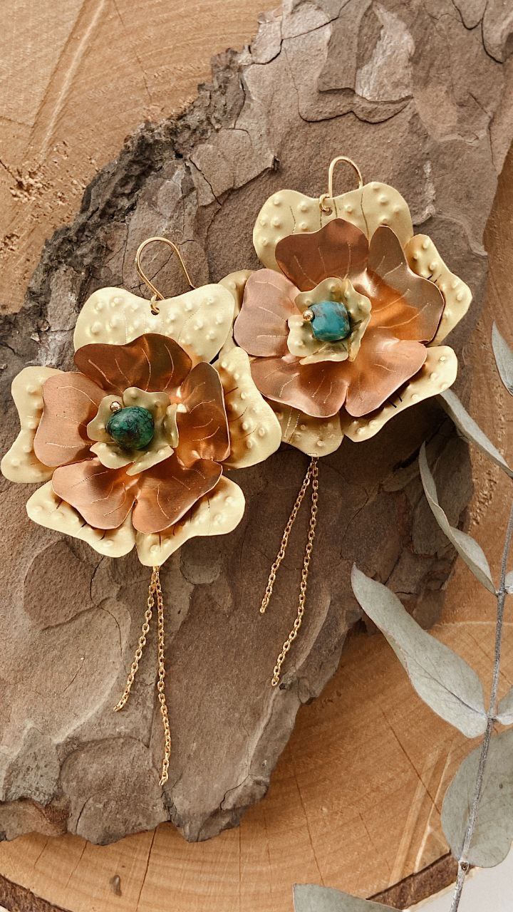 Все украшения созданы из листовой латуни и нейзильбера с чеканкой, ручной гравировкой и натуральными камнями.